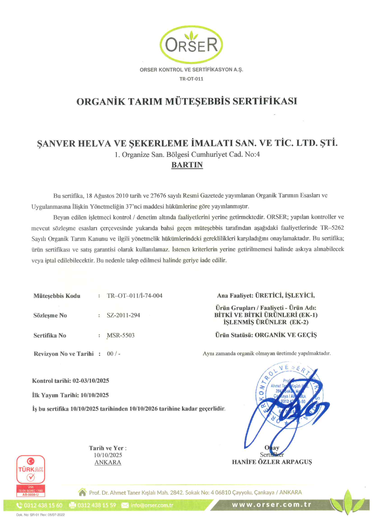 Organik sertifika, yalnızca son üründe değil; tarladan hasada, işleme sürecinden paketlemeye kadar tüm aşamalarda geçerli olmalıdır. Biz de bu zincirin tamamına uyuyoruz.