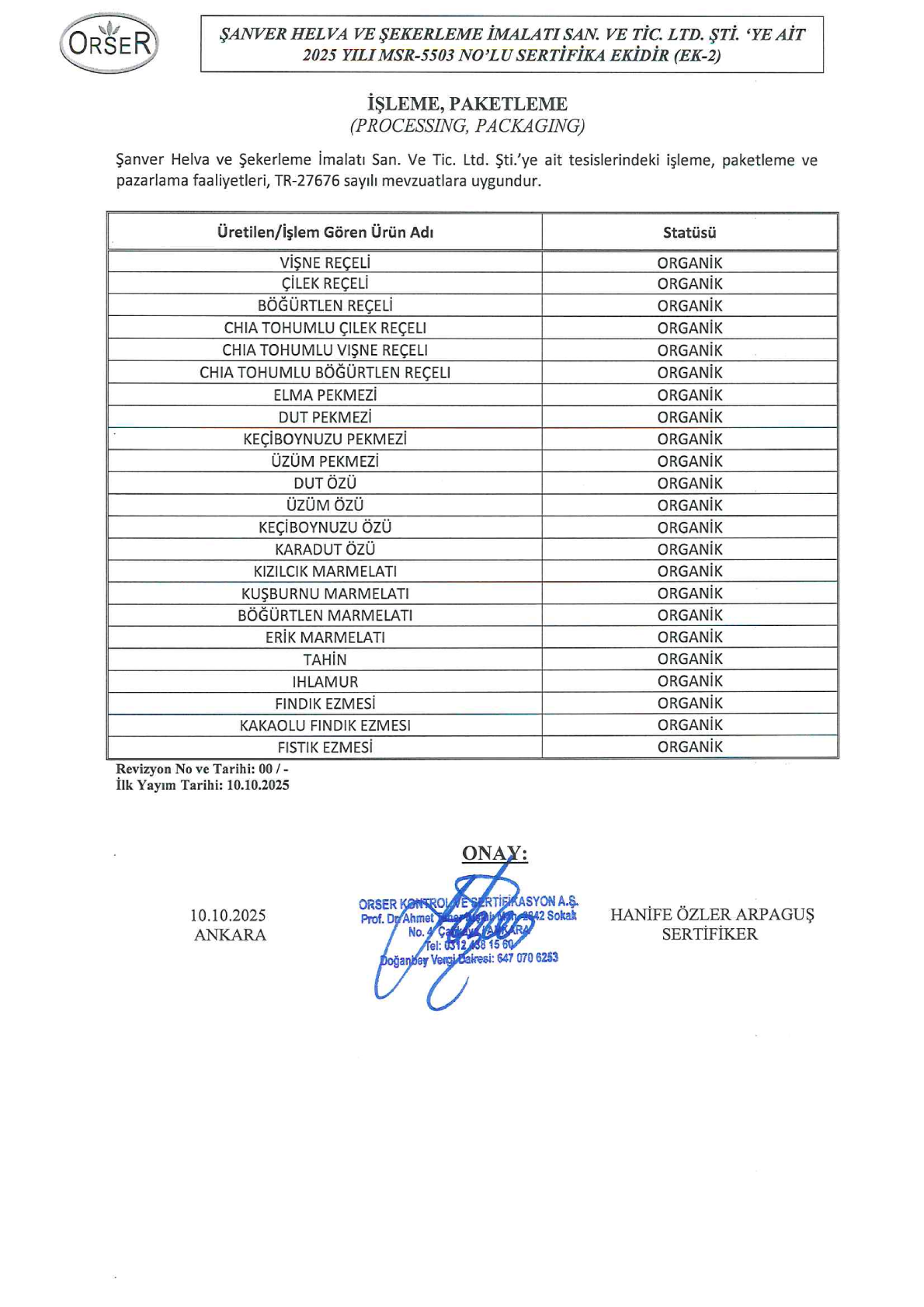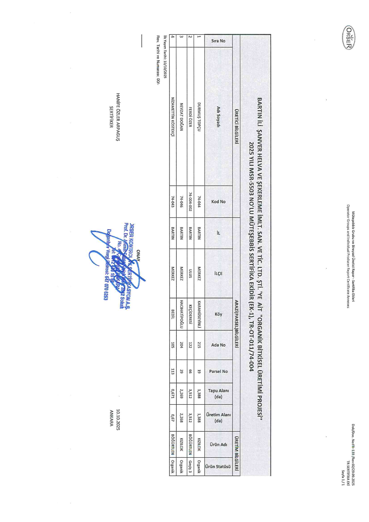 Organik sertifika numarası